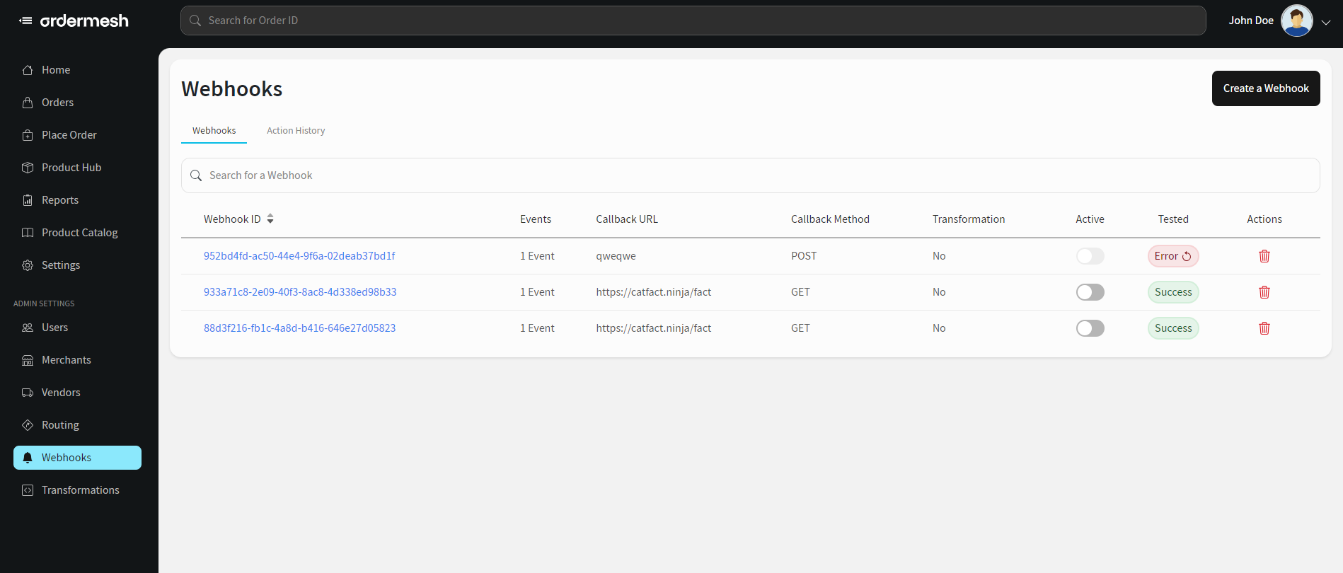 Webhooks are user-defined HTTP callbacks that are triggered when an order or shipment create/update event occurs. Whenever an event occurs, the webhook sees the event, collects the event data, and sends it to the Call Back URL specified by you in the form of an HTTP request.